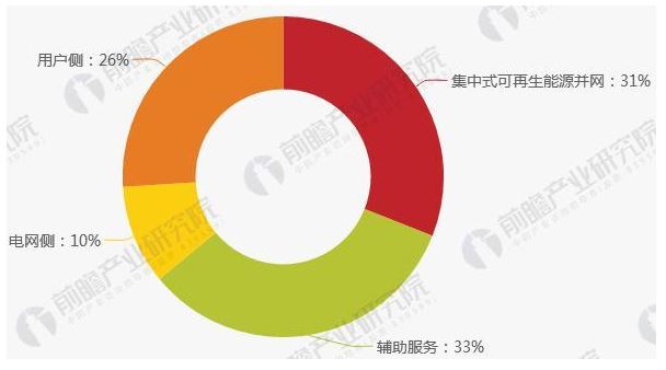 目前,儲能在電力領域的應用情況看,基本應用在可再生能源并網(專指儲能在集中式風電場和光伏電站中的應用)、輔助服務、電力輸配、分布式發電及微電網等領域。
