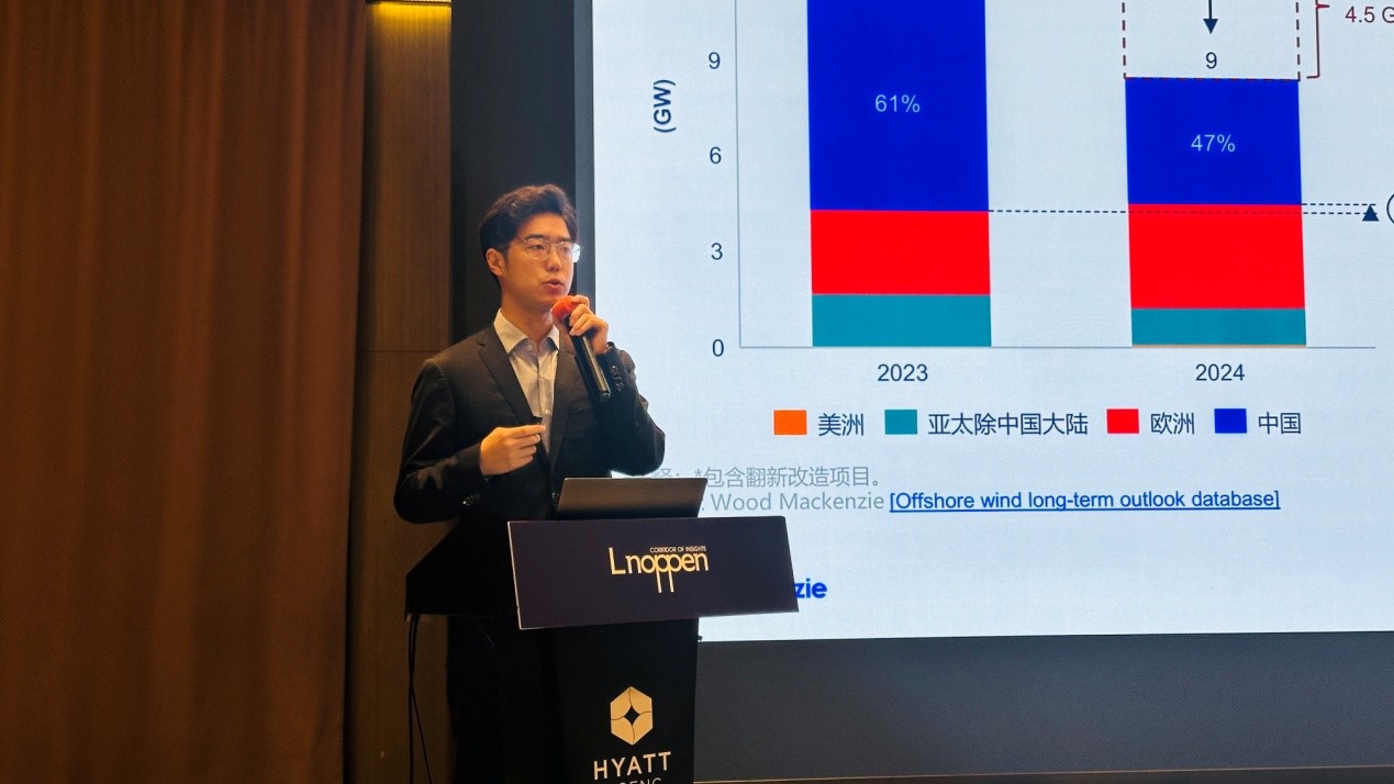 伍德麥肯茲海上風電市場分析師王宇凡以《全球海上風電市場的現實與機遇》為題發表了演講,分享了全球海上風電市場現狀、市場的動態調整以及未來發展的關鍵因素。