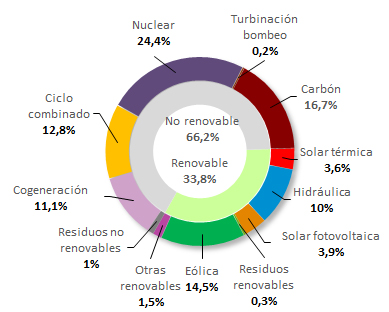 本月半島系統(tǒng)可再生能源產(chǎn)量比上年增長(zhǎng)14.4%,占33.8%,受液壓發(fā)電量增加的推動(dòng),能源產(chǎn)量比去年8月減少7.4%。