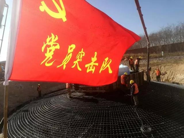 工期是效益。在保障安全、質量的前提下,以及1號風機基礎施工圖紙2017年10月20日到圖的實際情況,突擊隊隊員周密組織、不等不靠、認真籌劃、以艱苦奮斗的精神和敢打硬仗的作風披荊斬棘,戰勝一個個困難,攻克一道道難關。短短幾天即完成1號風機的FCD,2017年12月4日混凝土強度即滿足吊裝條件,全體黨員以實際行動充分體現了黨員的先鋒模范作用和黨支部的戰斗堡壘作用,讓黨員突擊隊的旗幟在施工現場迎風飄揚。