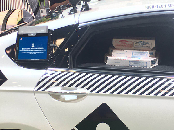 福特與達美樂披薩合作,通過輸入驗證碼取餐的自動駕駛送餐車。