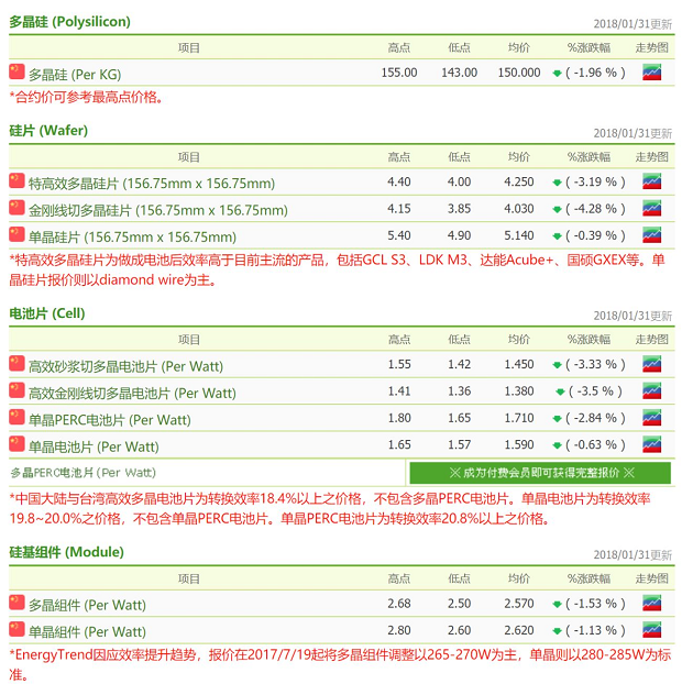 2018年2月4日報道了單多晶硅片的降價消息。上游的連續降價將慢慢傳導到終端。