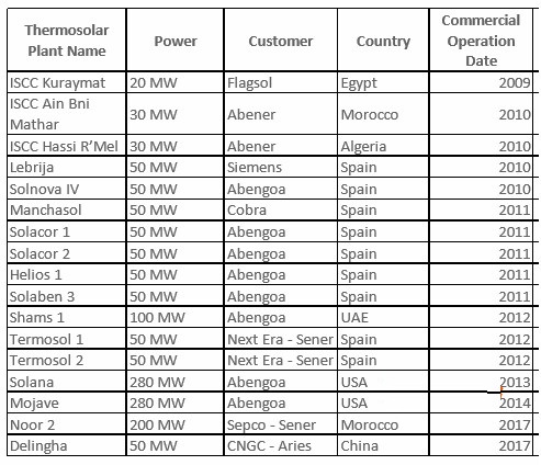 早在20世紀(jì)80年代初,首諾便為L(zhǎng)uz公司在美國(guó)加利福尼亞州Mojave沙漠相繼建成的9座槽式太陽(yáng)能熱發(fā)電電站SEGSI~SEGSIX提供導(dǎo)熱油,SEGSI系列電站總裝機(jī)容量達(dá)35.38萬(wàn)千瓦,為全球最早一批商業(yè)化光熱發(fā)電項(xiàng)目。此后,Therminol®VP-1被全球二十多家商業(yè)化槽式太陽(yáng)能熱發(fā)電電站廣泛采用,首諾導(dǎo)熱油覆蓋的商業(yè)化槽式太陽(yáng)能熱發(fā)電電站總裝機(jī)容量達(dá)1.4GW。