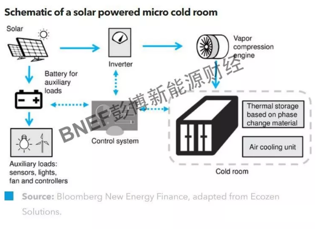 冷藏需求開始不斷為偏遠地區的微電網創造新的機會,有望為微電網帶來重要的潛在收入。由于缺乏冷鏈基礎設施,許多新興市場中的農產品會在收獲后面臨嚴重損失,僅印度一國在這方面的損失就超過約140億美元。在冷藏需求無法滿足、電力供應不足,及光伏電力具備價格優勢的大環境下,一些下游光伏運營商可能會迎來新的機會。